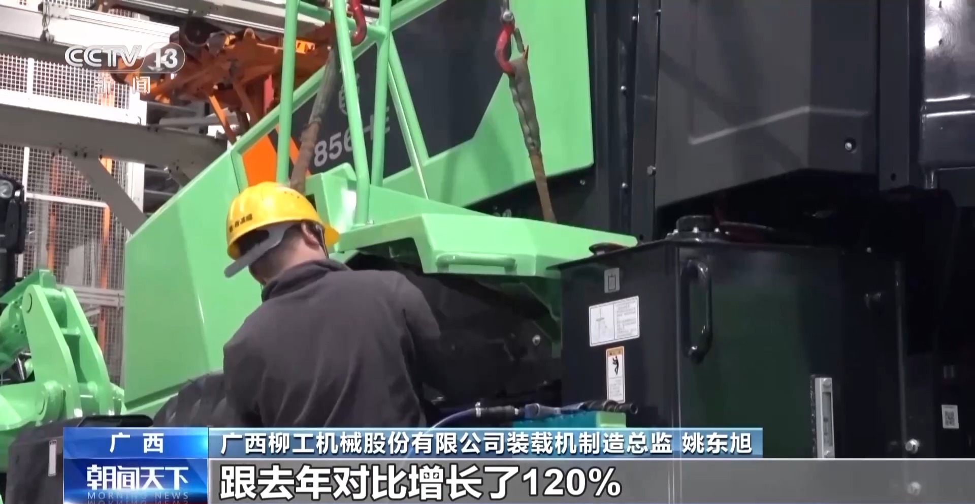 广西柳工机械股份有限公司装载机制造总监姚东旭:今年我们电动装载机出口量比去年增长了120%。以前一条生产线可以生产,现在三条生产线可以生产。