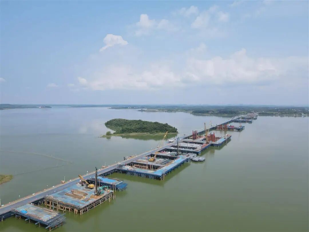 建立桥梁工程施工现场
